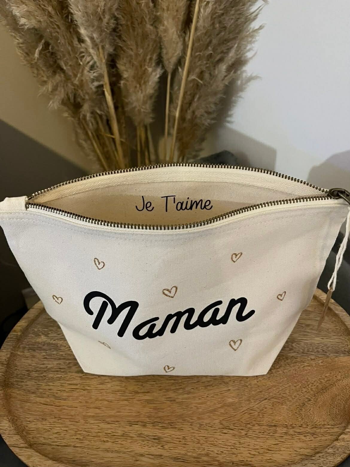 Notez votre personnalisation pour le texte à l'avant de la pochette: (ex: MAMAN/MAMIE/MOUNETTE)